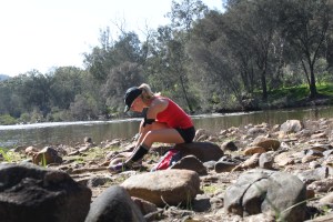I soon made my way back to where the river was and finished the last short section of the run. I stopped by Wally-G Pool to fix my shoes and sock to try to ease a raging blister I was getting on my right foot. Stopping made me realise just how warm it was and how inviting the water was, so I ‘Bear Gryll’s’d it up and headed into the water for a bit of wading.